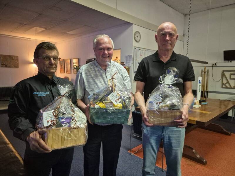 v.l.n.r. Cor Emmens,3e prijs; Johan Elzinga 1e prijs; Roelf van der Land 2e prijs